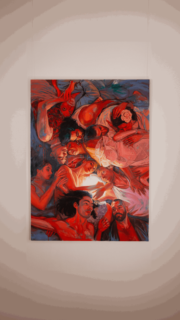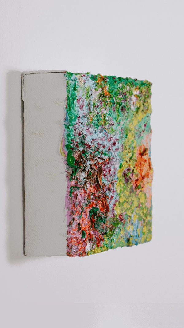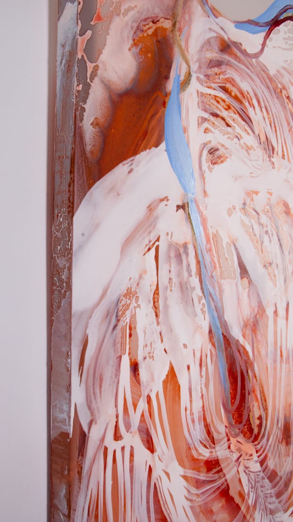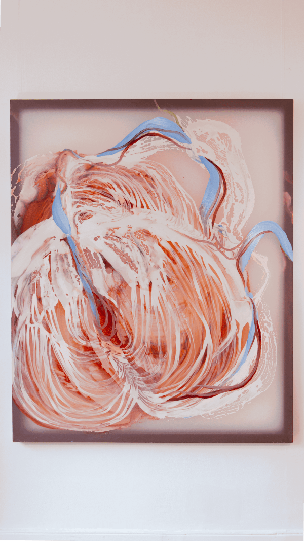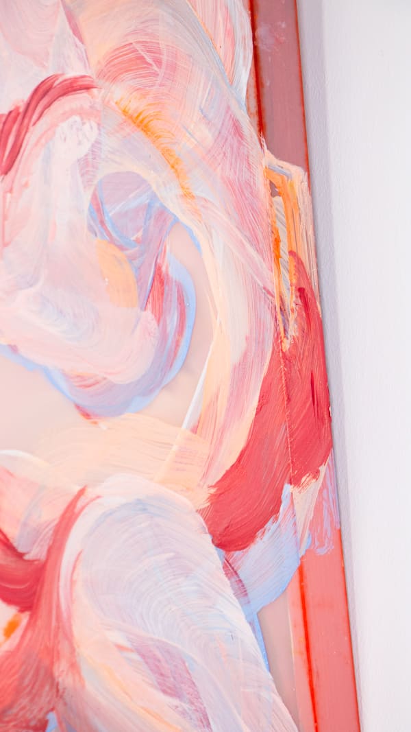 Furthermore, the title plays an important role on the idea of self-expression and being understood, whether through painting, photography, or performance - art is a ritualistic form of communicating what words often cannot. Whether through a play with bodily aspects and transparency (Garagnoux), materiality (Steyaert), thick layers of paint and interpretation of tales and memories (Maguire), neon colours and portraiture (Hazell) or photography (JanMohamadi), the exhibiting artists translate their identity directly onto the chosen medium and the artwork is therefore a full reflection of themselves and their souls.