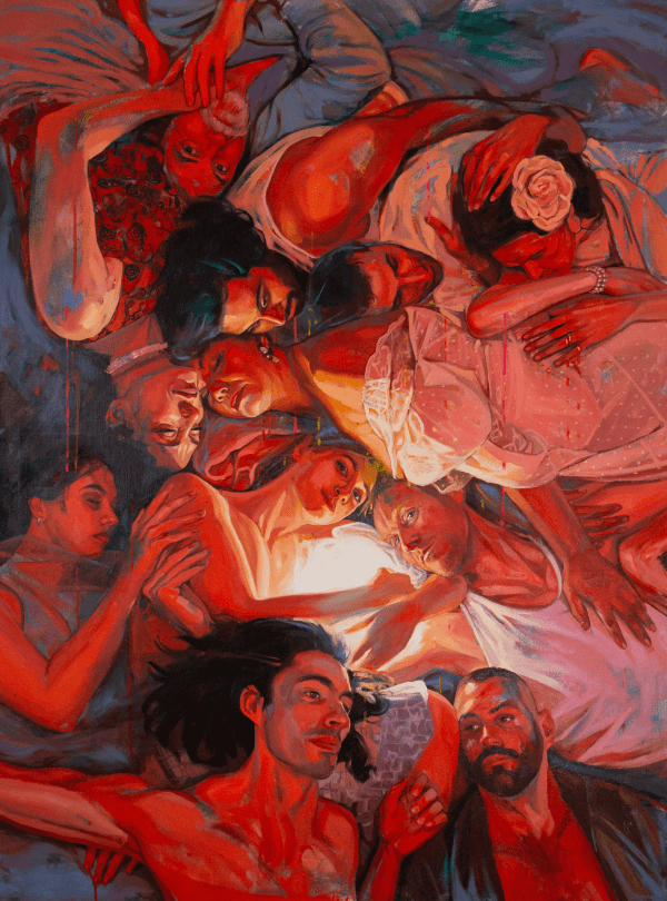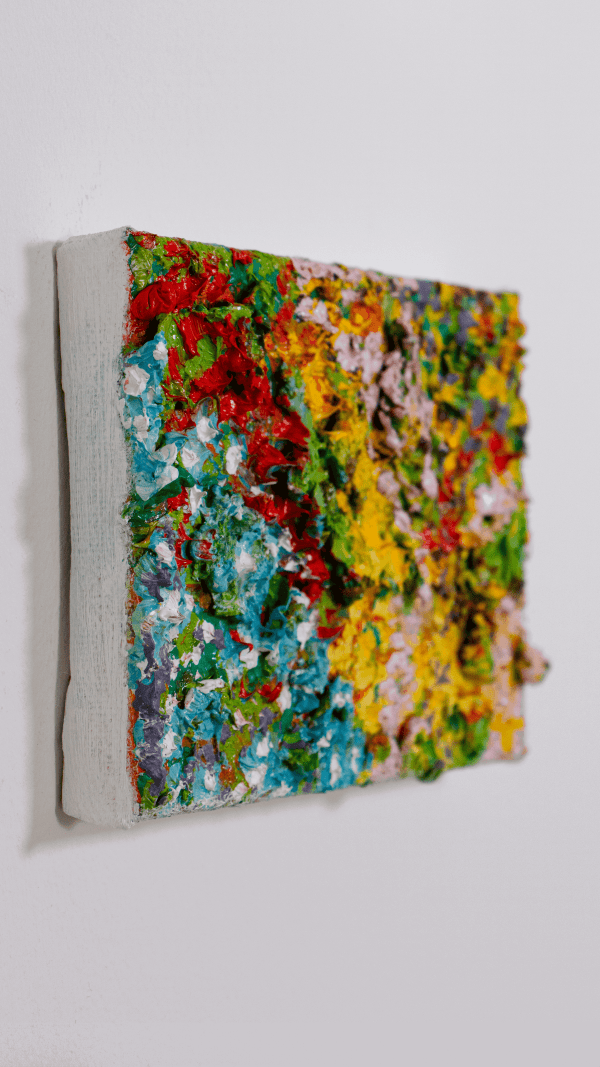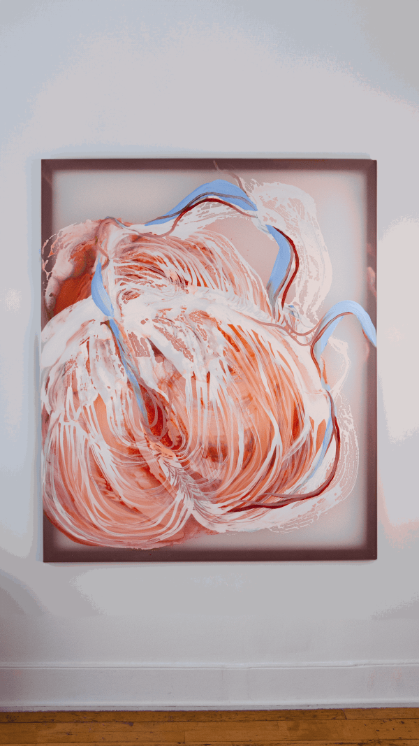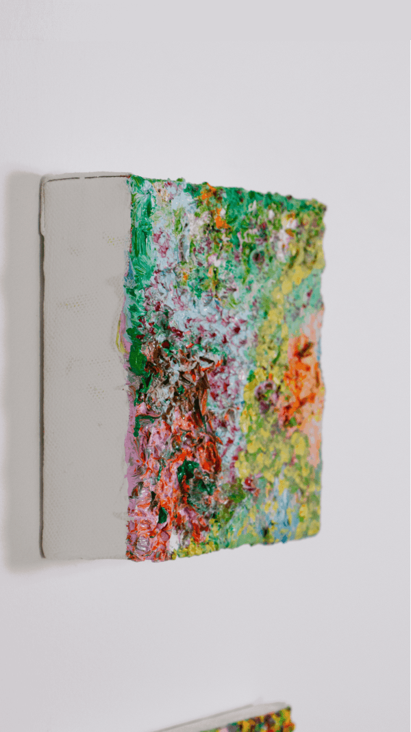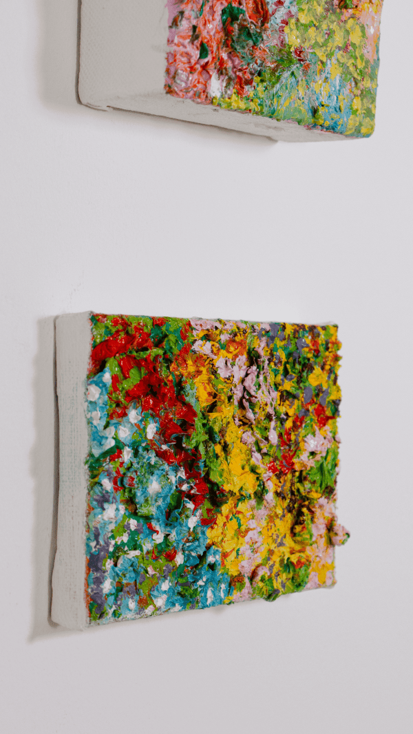 Furthermore, the title plays an important role on the idea of self-expression and being understood, whether through painting, photography, or performance - art is a ritualistic form of communicating what words often cannot. Whether through a play with bodily aspects and transparency (Garagnoux), materiality (Steyaert), thick layers of paint and interpretation of tales and memories (Maguire), neon colours and portraiture (Hazell) or photography (JanMohamadi), the exhibiting artists translate their identity directly onto the chosen medium and the artwork is therefore a full reflection of themselves and their souls.
