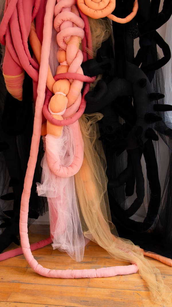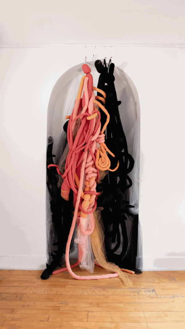 The exhibition, curated by Vittoria Beltrame, plays with ideas of transparency and intimacy reflected in the pieces through materiality and semi-autobiographical work. The show highlights sight as one of the five senses, while also underlining the imagery of the eye often linked to spirituality and higher power (e.g. third eye) and how through it one perceives and understands the world and one's place in it. The exhibition wants to highlight the idea of transcendentalism, and how one experiences materiality through human form - with the understanding that art has the power to translate certain ideas and introspection into objects perceivable by the eye, then strongly felt within one. This phenomenology can be linked to Maurice Merleau-Ponty's exploration of the body's role in perception, which he explores in ‘Phenomenology of Perception’ (1945). In his writing, Merleau-Ponty emphasises the embodied nature of perception, suggesting that our experience of the world is not separate from our bodily existence but deeply intertwined with it.